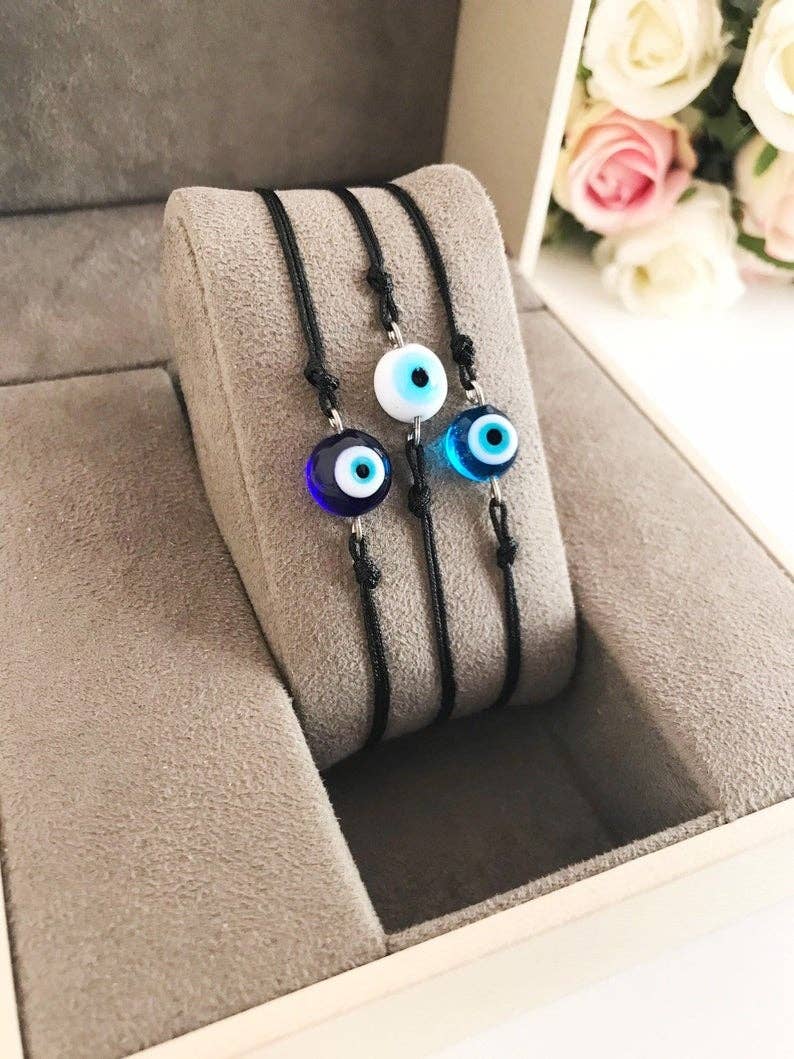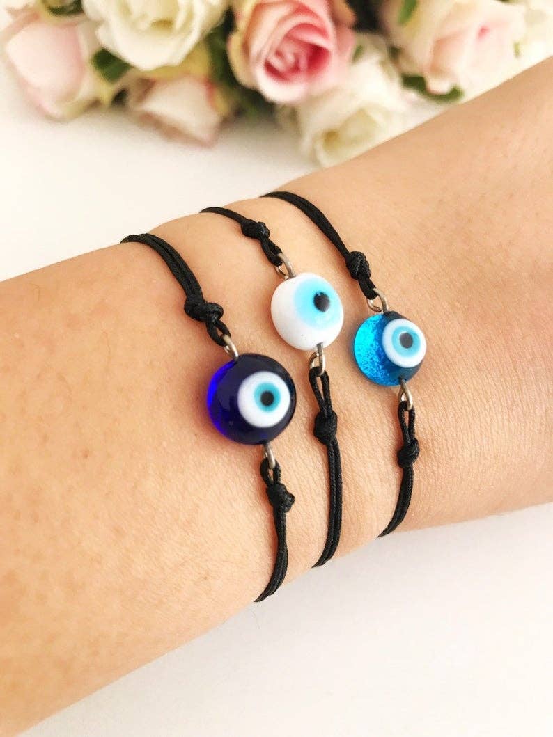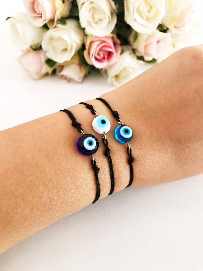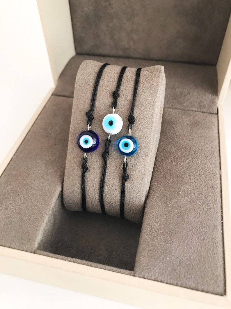 Murano glass evil eye bracelet, blue evil eye bracelet, black string bracelet, white evil eye bracelet, glass evil eye charm, greek bracelet 🌟 Please choose charm color during checkout; ;...