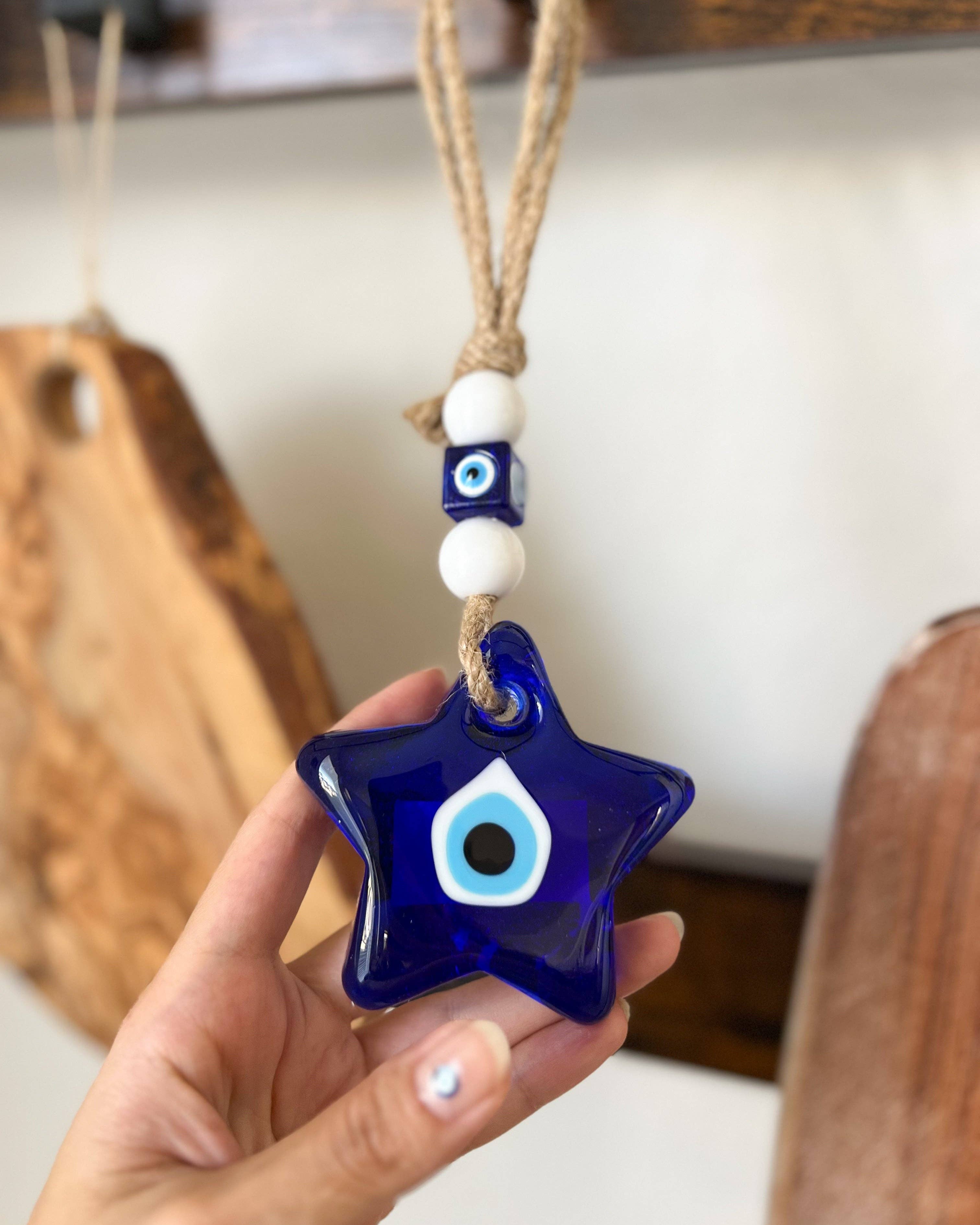 Evil Eye Wall Hanging – A Piece of Turkish Tradition Our glass evil eye wall hanging is made from solid blue glass, it’s got that classic, deep cobalt color that...