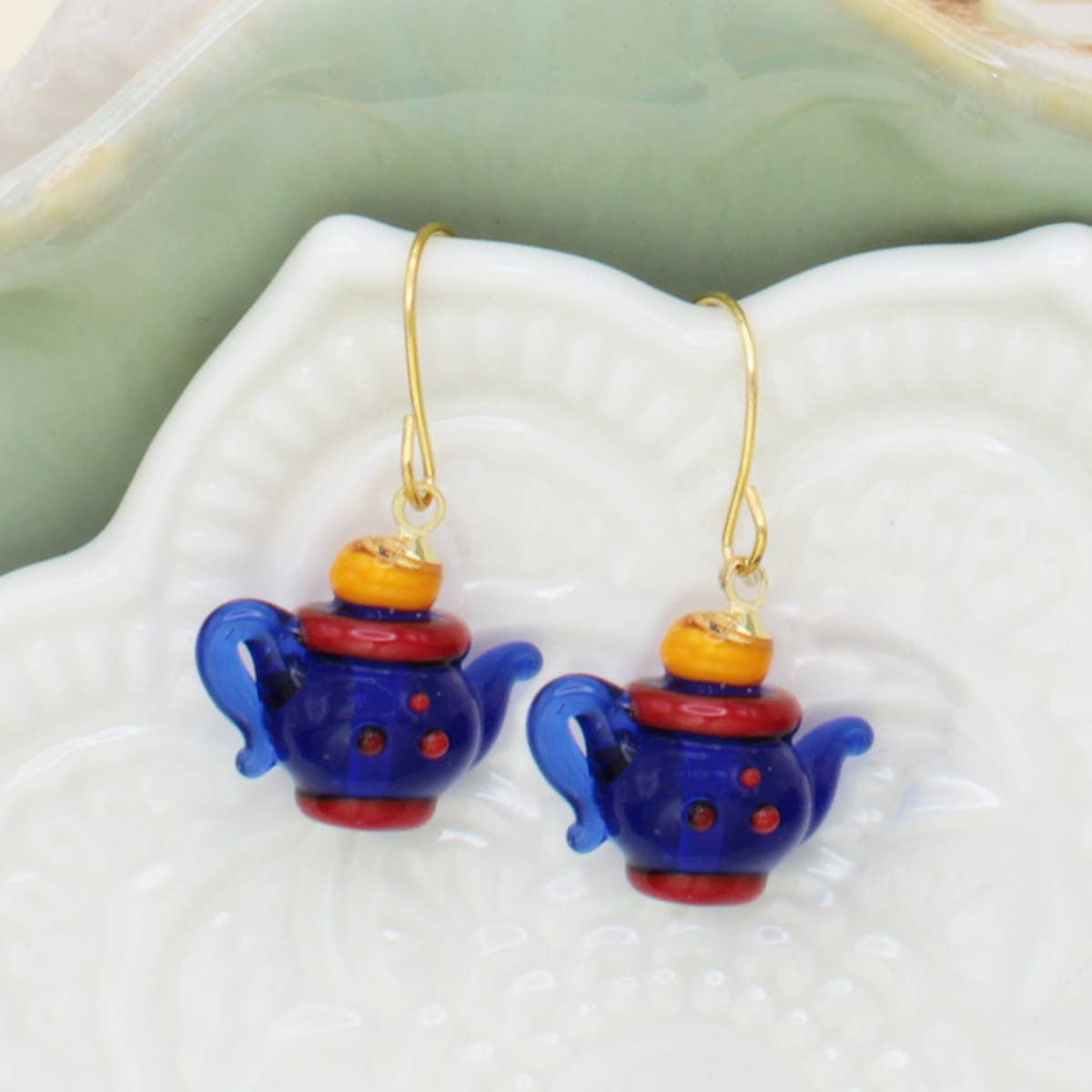 Steep yourself in style with these delightful glass teapot earrings. Crafted with exquisite detail, they capture the whimsical charm of a classic tea party in miniature. Perfect for tea lovers...