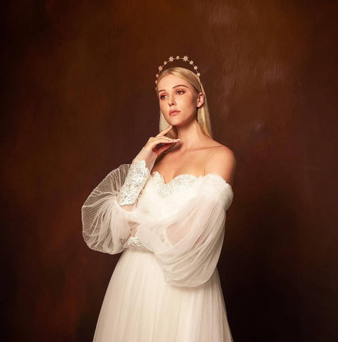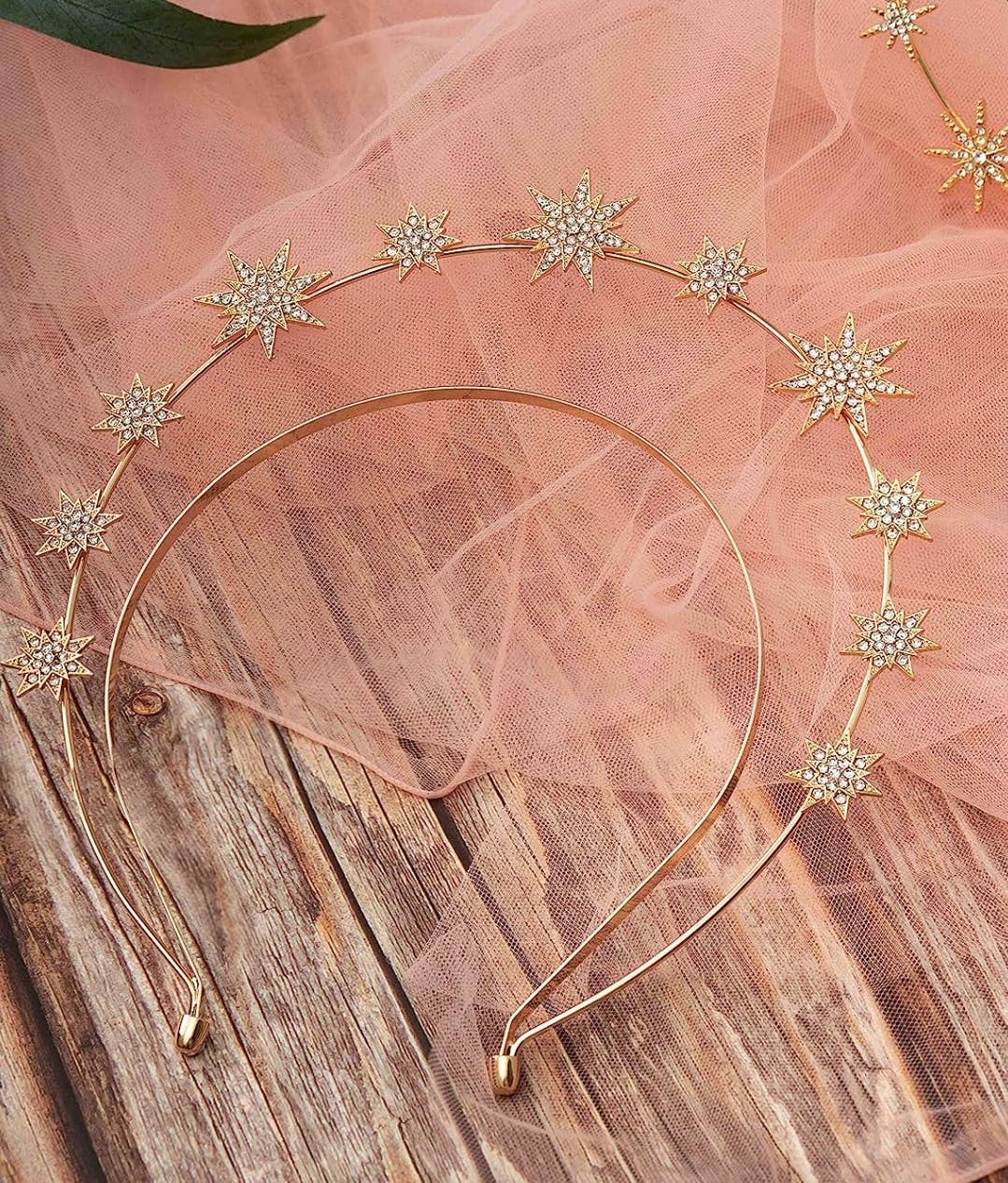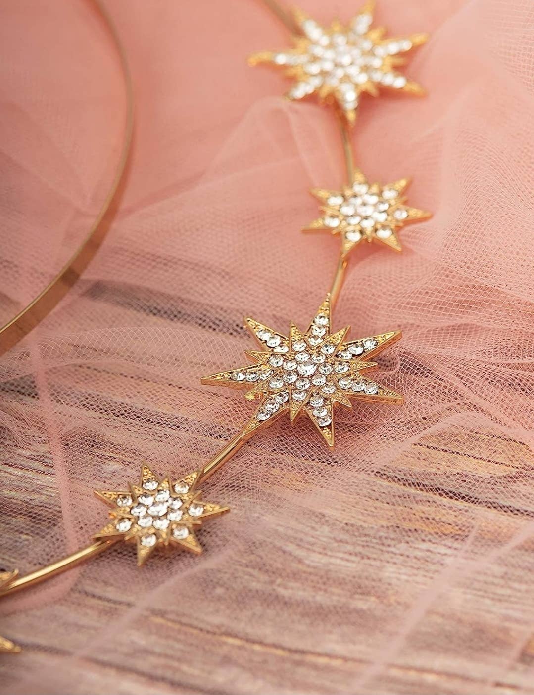 Color: Gold The Star halo crown headpiece is made by high quality alloy, measures almost 3 inches high, about 38g, one size fits most women. Made with dainty crystal stars...