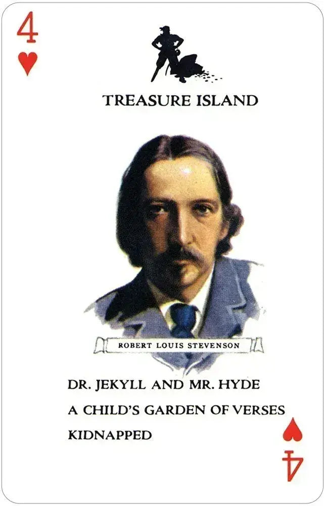 Authors is a classic card game dating back to 1861. The author's deck contains 52 cards featuring color portraits of 13 honored writers, with lists of their four greatest literary works.